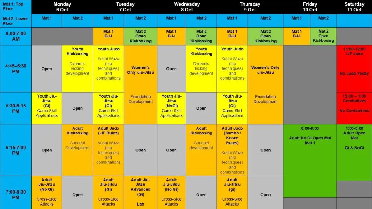 Check the “groupme” app for Friday evening open mat participants. If you are not on the app, see Coach Ted, who can help you get set up.